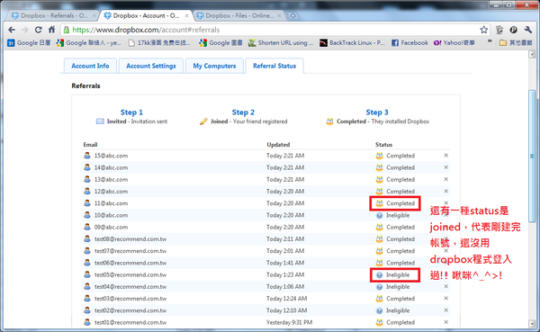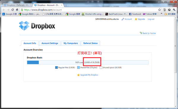 自己DIY獲得16G的dropbox好友邀請容量獎勵