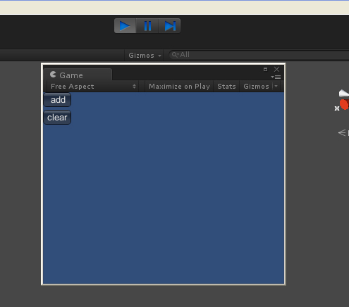 回到Unity,點擊運行按鈕,會看到剛才的腳本已經運行了。里面有兩個按鈕。