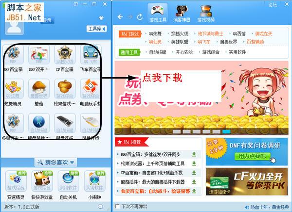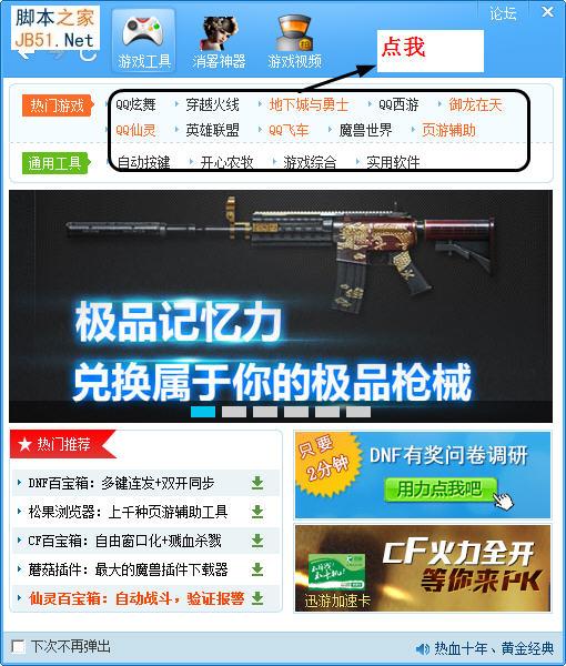 打開程序即可在左邊框看見一些常見游戲輔助,dnf、cf、飛車……點擊圖標即可下載哦