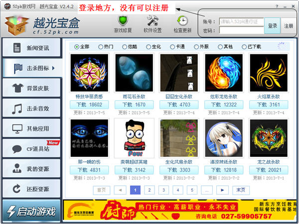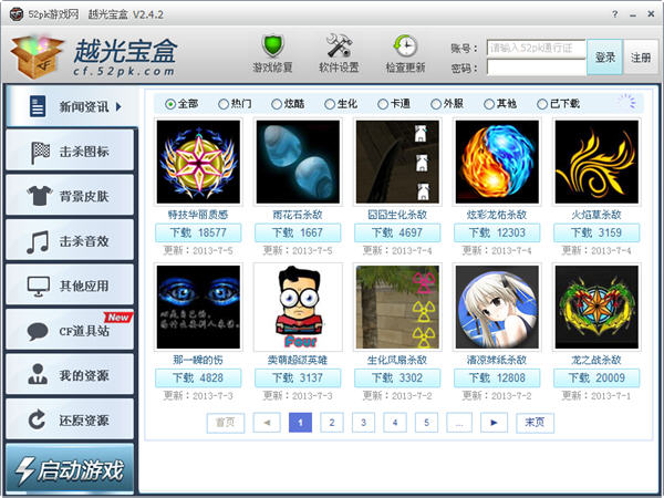 下面的背景皮膚,擊殺音效的操作 和修改圖標是一樣的,都是直接下載 一鍵安裝 啟動游戲即可哦!真的是很方便