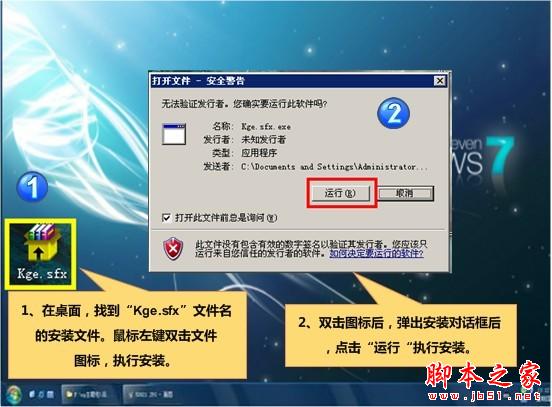 返回到桌面后,找到“Kge.sfx”文件名的安裝文件。鼠標左鍵雙擊文件圖標,執行安裝。