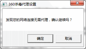 360殺毒會自動檢測您是否需要使用代理服務器上網,如果不需要,則會提示您: