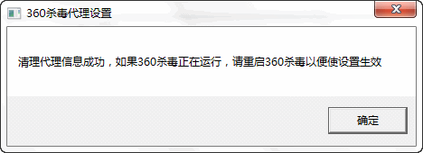 360殺毒會自動清除代理設置,清除完成后提醒您: