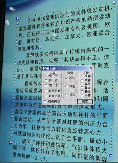 七、選擇要截取的圖像后,松開鼠標,會彈出如下對話框,如果你要別的圖像文字的種類,分別在“語種”里選取“簡體、繁體、英文”等,然后點擊確定,馬上會彈出一個識別結果的文本文檔。