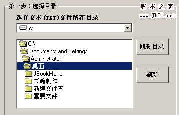 3、選擇你的TXT電子書存放的文件夾,例如:《武漢,處女的墳地》.txt這本書存放在你系統桌面上,那么如下圖設置: