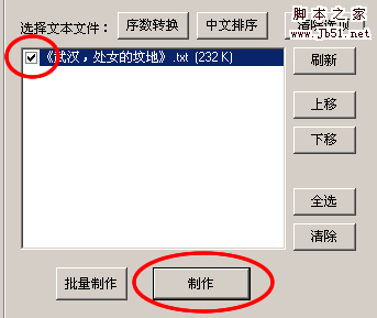 5、進行了以上設置后,在下面書籍列表框中勾選你所要轉換的電子書,點擊制作,稍等即可開始制作,我的計算機CPU1.7G內存512,制作時間是一秒,這個根據個人機器配置和書籍大小,速度一般都很快。如圖: