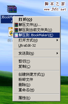 2、鼠標右鍵單擊壓縮包,彈出菜單,點擊“解壓到JBookMaker”,將壓縮包解壓縮,如圖: