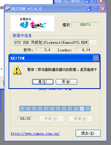 注意!點擊“修復”來修復RM970的引導程序(不是點擊“升級”)