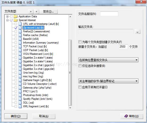 勾選要恢復的文件類型,選擇輸出文件夾,點擊確定,winhex工具會自動完成查找并將查找出來的文件類型恢復到用戶選擇的文件夾里。