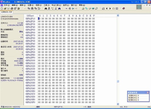 不過那個2G多的linkdata.bin用這種辦法擴容很耗時間。可以換個方法,點擊“文件”菜單,新建一個合適大小(一般是所需擴容大小+1)的文件,然后把這個文件的數據復制后寫入整個文件的尾地址,這也達到了擴容目的,而且處理速度很快。