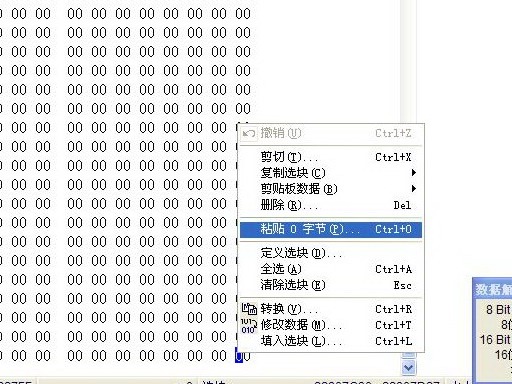 改MOT、BGM的時候有可能需要在文件尾擴容,方法便是在文件尾右鍵點擊,選擇“編輯——粘貼零字節”,輸入想擴容的大小即可。