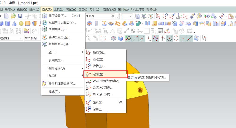 1、用WCS定位坐標來新建特殊視圖。選格式--WCS--定向,選用三點定向。