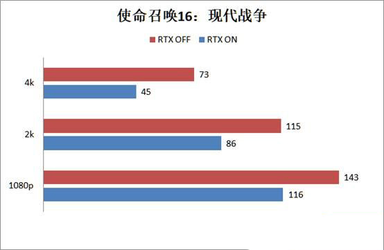 使命召喚16:在關閉光追的情況下RTX 2080 SUPER即使是在4K分辨率下也可以游刃有余,完全可以搭配144Hz顯示器暢玩游戲。開啟光追后,游戲幀率有所下降,4K分辨率下有些吃力,不過在2K和1080P下都能達到非常流暢的效果。