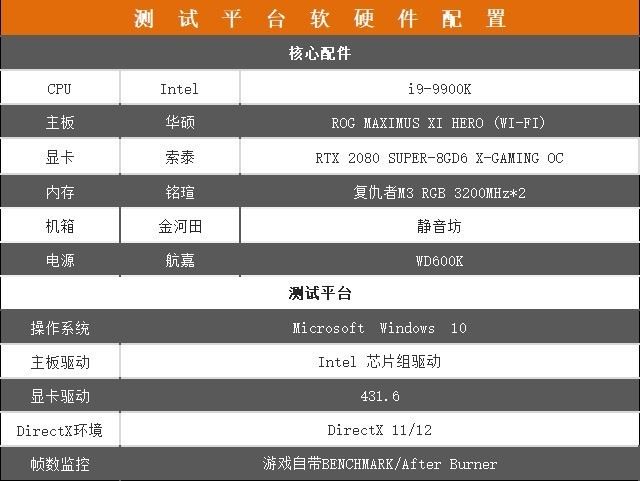 先來看看此次首測的測試平臺,CPU方面我們采用第九代Intel八核心十六線程的i9-9900K、ROG MAXIMUS XI HERO (WI-FI) 主板、影馳的HOF OC LAB MASTER DDR4-4000內存,電源為航嘉WD600K。