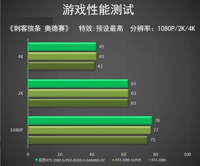 在游戲測試中,索泰RTX 2080 SUPER-8GD6 X-GAMING OC顯卡的表現與理論性能測試中的表現相符,對于這個價位的非公版來說是正常水平。
