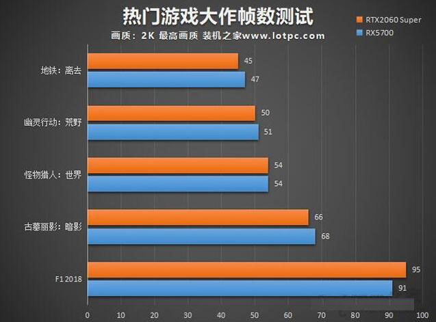 在游戲中,RX5700基本與RTX2060 Super打成了平手,只有小幾幀的差距,在不同的游戲下,兩者互有勝負。