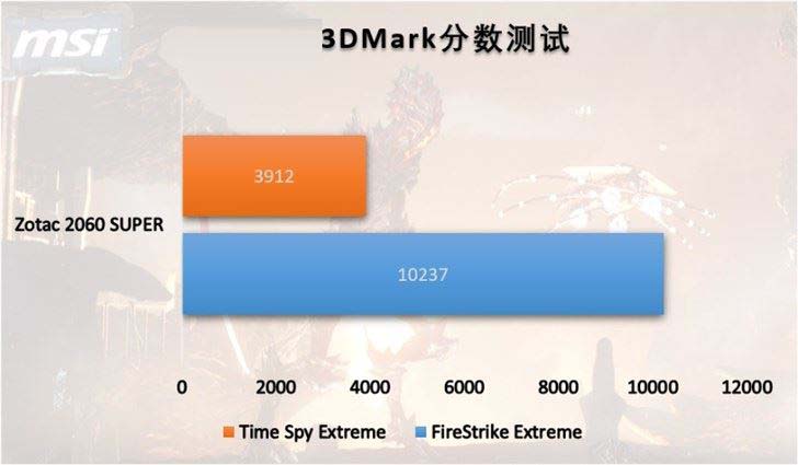 Zotac 2060 SUPER運行Time Spy Extreme最終得分為3912,FireStrike Extreme得分為10237。