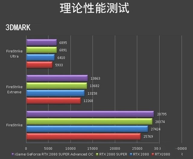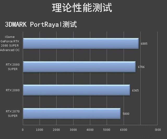 理論性能測試部分,我們使用3DMARK軟件進行測試。為了保證測試數據可靠,我們選擇了多項測試進行跑分。包括FS、FSE、FSU;TS、TSE和測試光追性能的PortRoyal。并與RTX 2070 SUPER、RTX 2080、RTX 2080 SUPER三款顯卡進行對比。