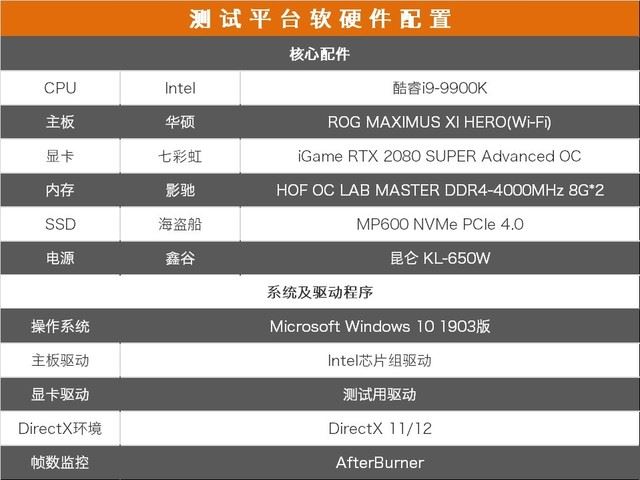 再來看看測試平臺,CPU方面我們使用了Intel第九代i9-9900K、主板則是ROG MAXIMUS XI HERO (WI-FI) 、內存為影馳的HOF OC LAB MASTER DDR4-4000,電源為鑫谷昆侖KL-650W。