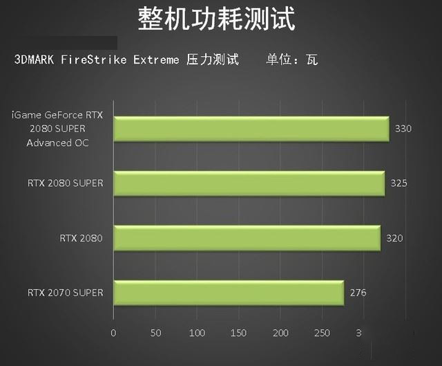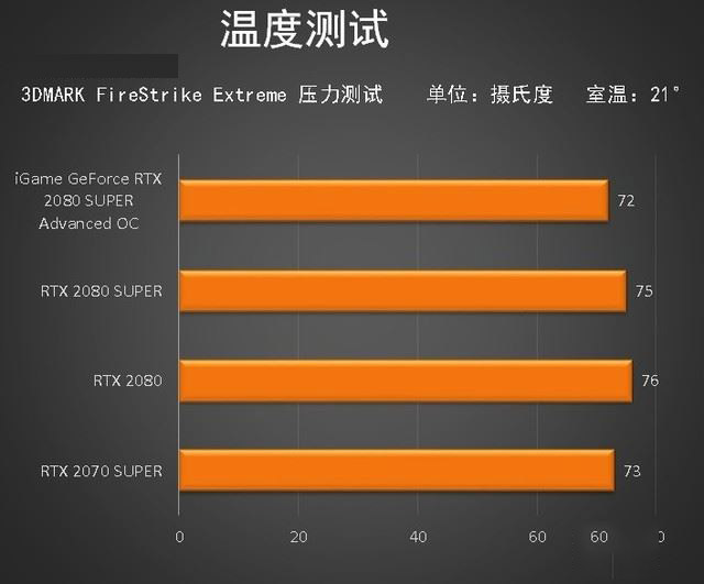功耗測試中,超頻過的iGame GeForce RTX 2080 SUPER Advanced OC顯卡功耗并不嚇人,只比公版RTX 2080 SUPER高出5W,比RTX 2080也僅僅高出10W。順帶一提,待機時的整機功耗約為45W,這樣的功耗表現可以說非常不錯。