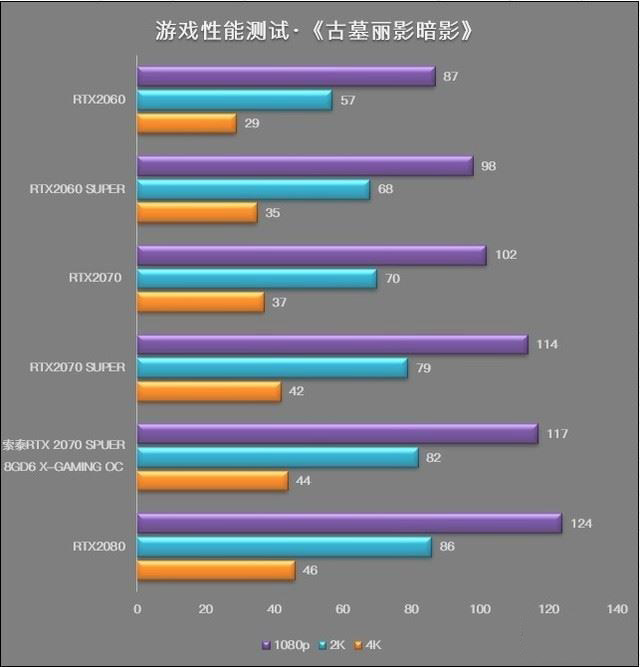 在三款游戲性能測試中,作為定位于游戲玩家的次旗艦,索泰RTX2070super-8GD6 X-GAMING OC的游戲性能表現,和理論性能表現實現了高度的一致性。在對比公版RTX 2070 SUPER中,都有著相當的提升;尤其是在對N卡有著相當優化的《古墓麗影暗影》的測試中,提升更加明顯。