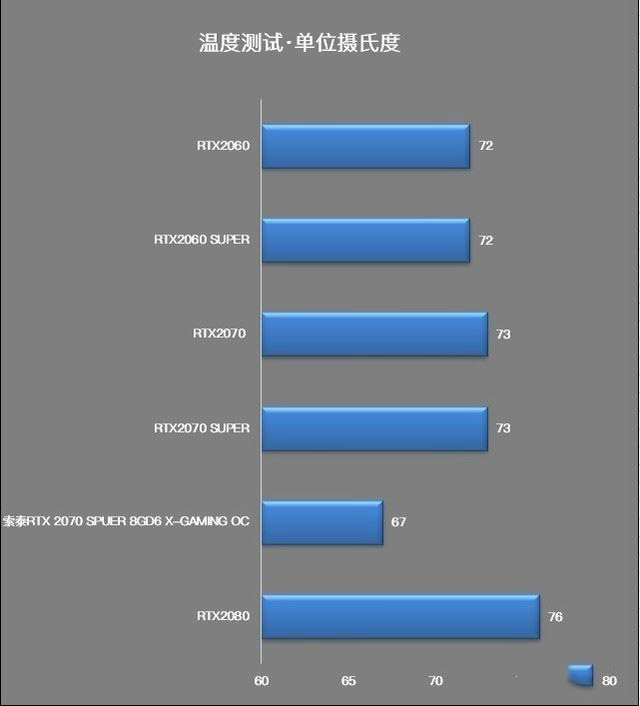 通過性能測試,我們可以看到新款RTX2070super-8GD6 X-GAMING OC在理論性能上全面超過公版RTX 2070 SUPER顯卡,得益于索泰在用料和設計上的常年積累,超過公版可以說是“灑灑水”了;至于對比RTX更高級別的2080,索泰此款顯卡的性能差異基本在6%-9%左右,相比二者之間的價格差異,這樣的性能表現,依舊對得起“真香”的名號。