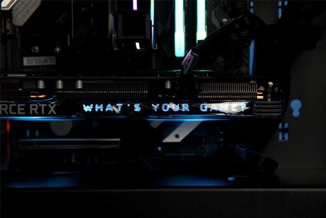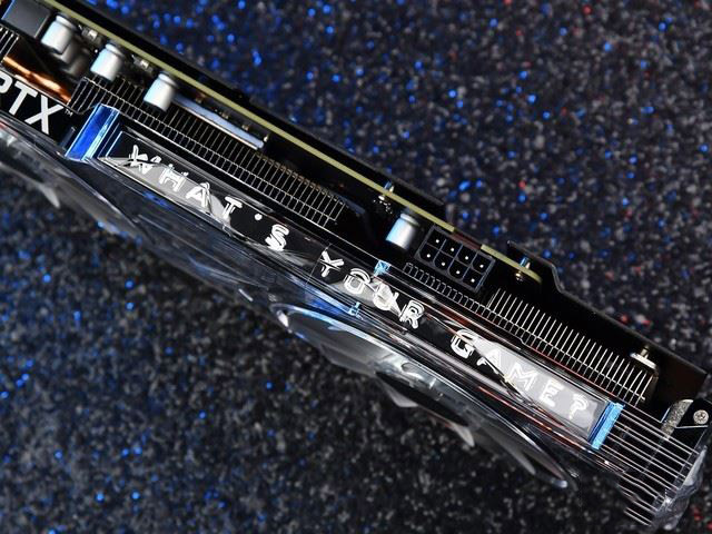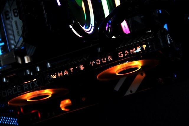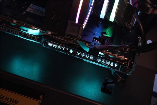 同時,在整個水晶外殼的頂部,還設計了能夠360度無死角折射炫光的特殊面板架構;當顯卡點亮的時候,頂部特殊架構下印刻的“WHAT'S YOUR GAME?”字符,在背光的映襯下,格外的閃耀和奪目。
