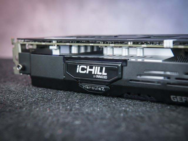 在映眾RTX 2060冰龍超級版顯卡的頂部是一個ICHILL信仰呼吸燈,這款顯卡其他部位沒有光效設計,只有頂部這個地方會有燈效出現。