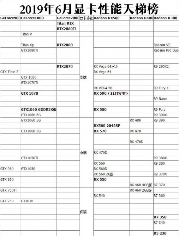 2019年6月顯卡天梯圖精簡版: