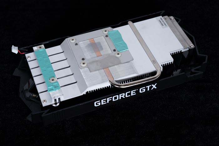 顯卡背面可以看到該卡沒有背板,散熱器很大,已經(jīng)超出PCB板