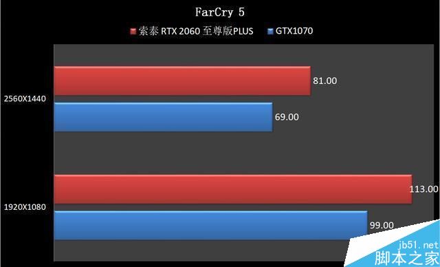 ▲FarCry5的最高特效下 測試對比,毫無例外,索泰RTX2060至尊版PLUS都是領(lǐng)先GTX1070的。而且看上去,RTX2060更抗高壓力負(fù)載。