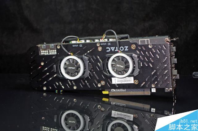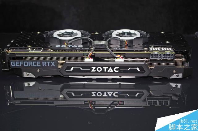 ▲2*PCI-e 8pin外接供電口,可以基本上不從主板上取電,索泰的LOGO下方有兩個后置風(fēng)扇的接口,風(fēng)扇與RGB運行從這里取電。