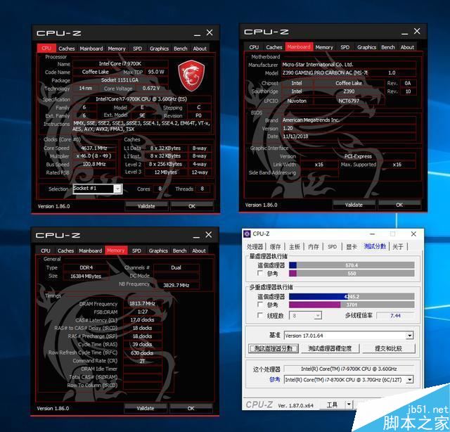 ▲然后用CPU-Z自帶的測試分?jǐn)?shù)測試一波,誒誒誒誒?微星主板的內(nèi)存效率很高啊?好像得分比別家高一點點。