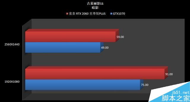 ▲古墓麗影11暗影 最高特效下,RTX2060領(lǐng)先GTX1070是肯定的,比較有趣的是,就算是2.5K分辨率下,RTX2060也能接近60FPS的流暢運行。