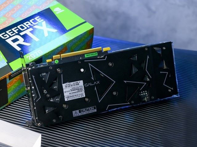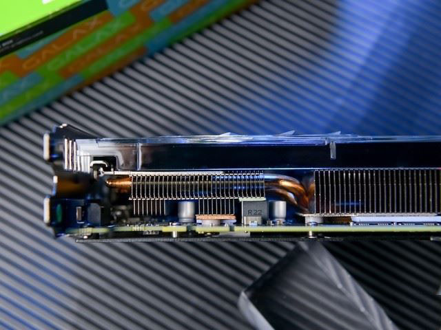 顯卡背部倒是沒什么特別的,鏤空的背板能夠更好地散熱,中間有一個(gè)“GALAX”的logo,下部還有防燙標(biāo)識(shí),好評(píng)。