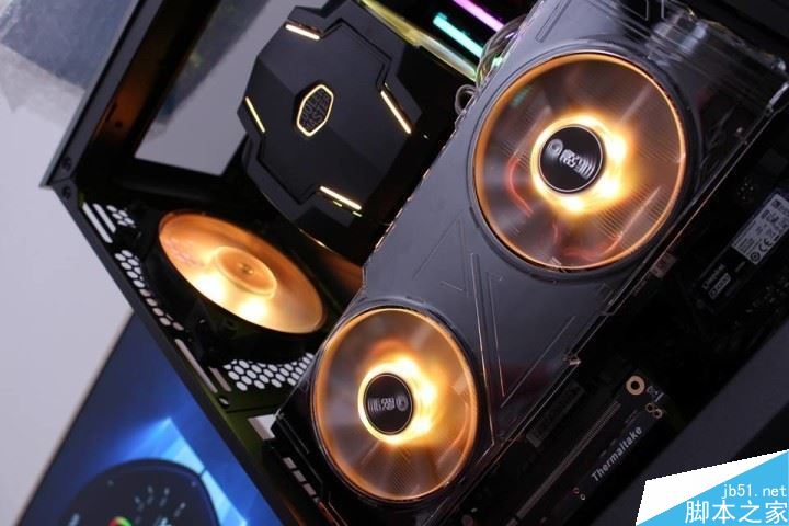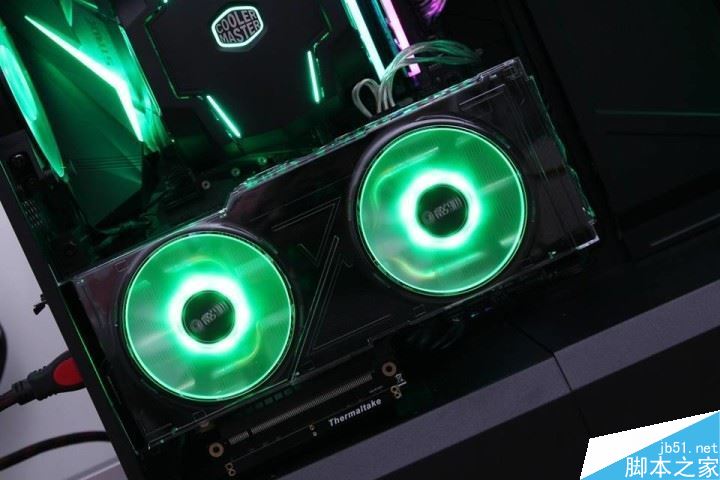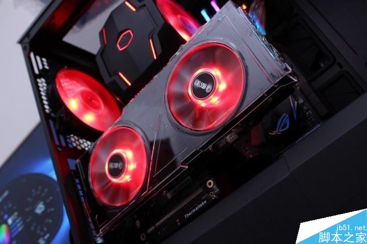 顯卡的垂直安裝可以讓燈光效果達到最大化,畢竟兩個風扇才是最大的發光源,但并不是所有的機箱都能有垂直安裝顯卡的設計,如果你是買新顯卡做新機安裝那么可以選擇一款能垂直安裝顯卡的機箱,記得還要另外購置一條PCI-E的數據延長線。接下來用這臺電腦對顯卡的性能進行測試,看看顯卡如何蹂躪目前主流的電腦游戲。