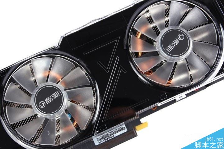 影馳新款的RTX2070在外觀和燈效上做了很大的改進,顯卡采用一體式的亞克力透明材質外殼,給人晶瑩剔透的感覺。雙9cm風扇是透光的磨砂材質,風扇內側有一圈RGB燈珠,通電后會有RGB燈效循環亮起。比較遺憾的是目前的燈光效果不支持跟主流的主板做燈光同步。后文部分會有燈光效果的展示。