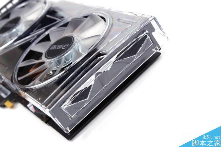 顯卡側面突起的造型有些類似冰晶的形狀,在整體透明外觀上起到點綴作用。