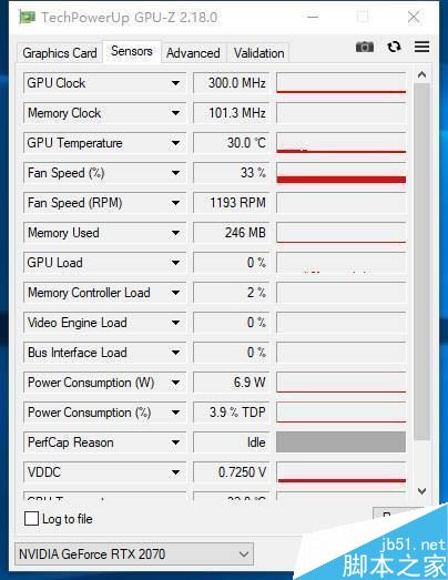 顯卡在待機情況下只有30度(室溫19度),風扇轉速為1200轉左右。