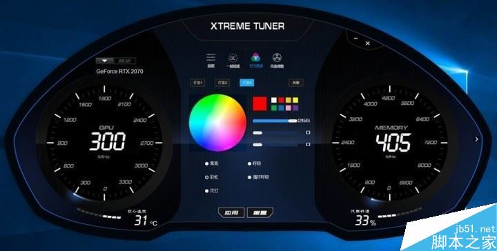 顯卡的主要功能介紹,其實離使用者最近的就是Xtreme Tuner控制軟件,使用這個軟件可以對顯卡進行自定義超頻,選擇燈光模式,設定風扇轉數。