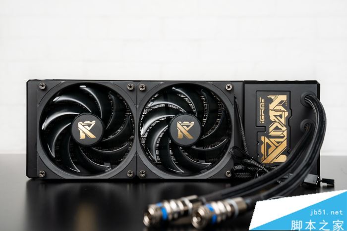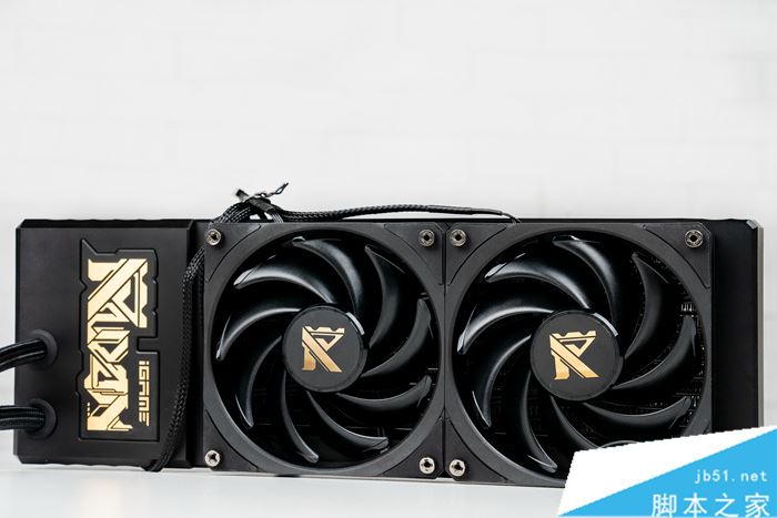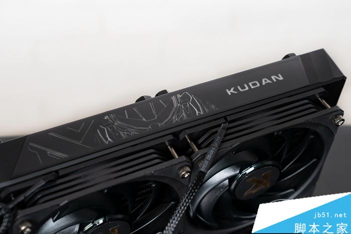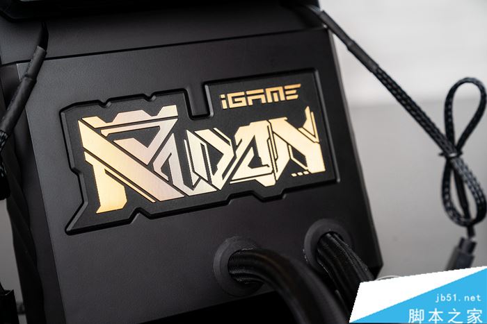 對了,冷排兩側均有RGB發光區域,有“Kudan”人物形象以及文字,采用5V 3Pin接口,可接入到主板上控制燈效。不過我們也發現了一個比較嚴重的弊端,這個冷排上的線非常多,兩個風扇4Pin接口、兩個5V RGB接口、一個水泵3Pin接口,使用起來非常不方便,如果iGame能夠在一體式水冷式做好Hub,通過一根線纜連接到顯卡上就更好了,畢竟顯卡溫度控制靠主板有點奇怪。