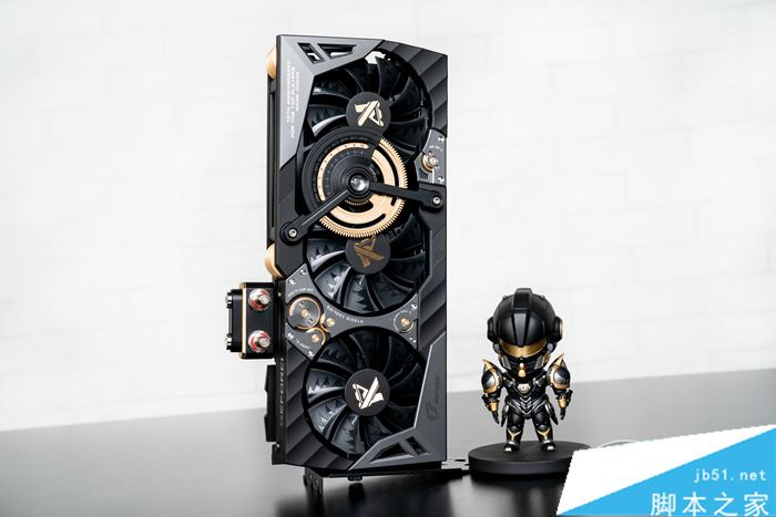 顯卡頂部擁有一個480×60分辨率的彩屏,可以自定義圖片以及顯卡狀態,并采用三個8 Pin外接供電,以求滿足RTX 2080 Ti顯卡在極限超頻下的功耗需求。