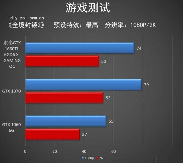 在《刺客信條:奧德賽》中的索泰GTX 1660Ti-6GD6 X-GAMING OC的分數與GTX 1070顯卡相差無幾,在2K分辨率下領先了一幀。