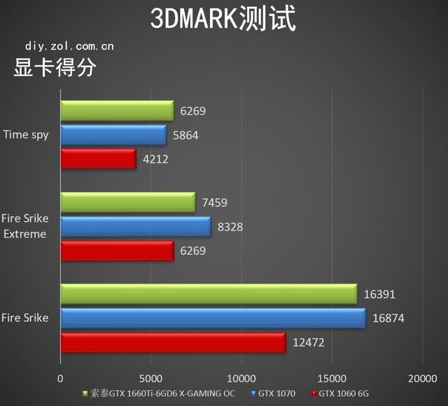 意料之中的分數,在對圖靈架構顯卡非常友好的DX12項目Time spy測試中,索泰GTX 1660Ti-6GD6 X-GAMING OC的分數超過了GTX 1070顯卡,而在DX11中則是GTX 1070顯卡勝出。