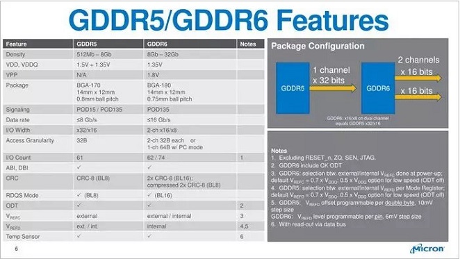 「 GDDR6 」 英文全稱為「Graphics Double Data Rate, version 6」,是第六代版圖形用雙倍數據傳輸率存儲器。簡單來說,就是顯卡的緩存。GDDR6 是目前最新六代技術,相比目前主流的GDDR5更先進,頻率更高,更有利于提升顯卡性能。