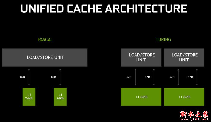 通過大幅度增加一級緩存的容量帶寬,圖靈架構(gòu)可以成倍提升FP32和INT32性能。