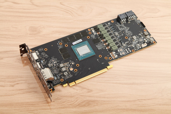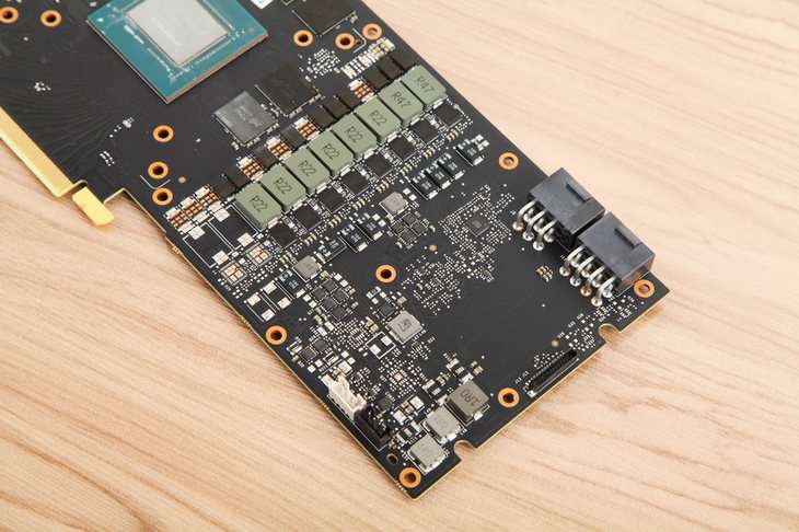 PCB板部分并沒有采用公版RTX 2070那種18cm長度的迷你PCB,而采用了與RTX 2080相同的PCB設計,知識在供電方面有一定程度的縮減,不過8相數字供電對于這樣一款TDP標稱值僅175W的產品來說已經足夠。
