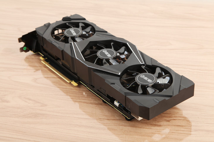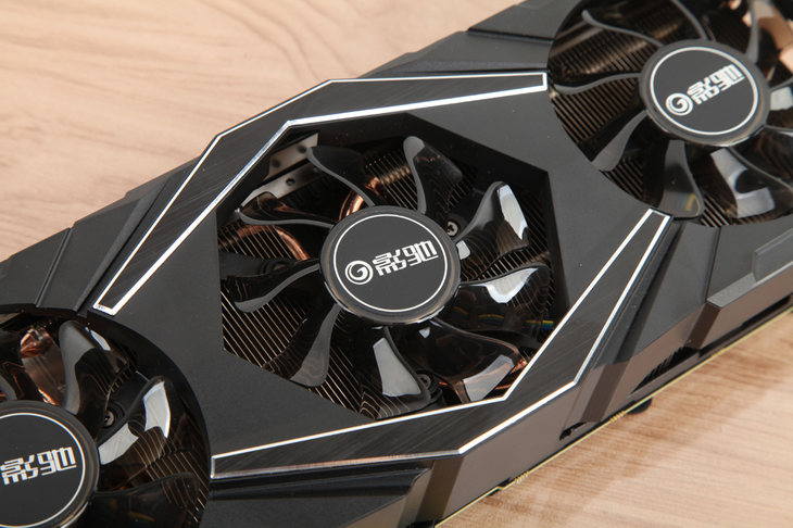 影馳RTX 2070大將采用了與RTX 2080Ti相同的外觀設計,同樣是三風扇布局和全黑的金屬+塑料材質外殼。