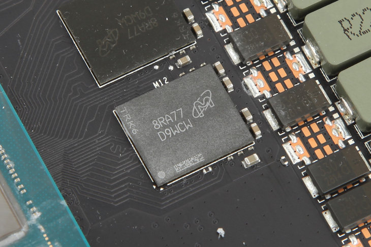 美光的GDDR6顯存等效頻率達到了14000MHZ,單顆容量1GB,由8顆組成共8GB的顯存陣列。