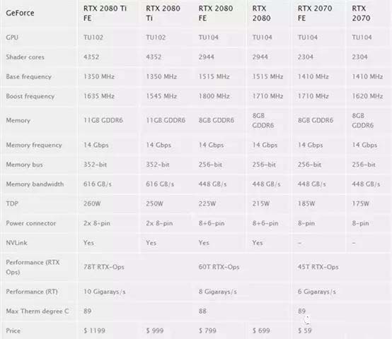 2. 從單精度性能來推算,2080與1080TI會在相近的水平上,2080TI預計會比2080提高25%左右。2070則相當于砍半的2080TI。